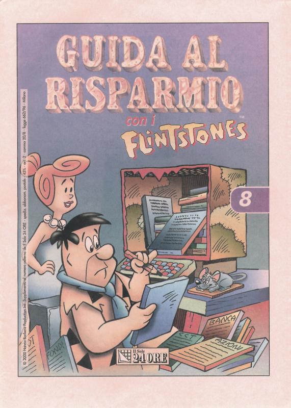 AL8 - RISPARMIO & FAMIGLIA CON I FLINTSTONES - nn. 1/10 - 10 ottobre/11 dicembre 1999 - 24 pgg. + cop. - cm 20 x 28 pm - 4 + 4 - Gratuito. Testi di Gabriele Marconi. Disegni di Angelo Scariolo, Enrico Berrini. Copertine di Flavio Ferrion.