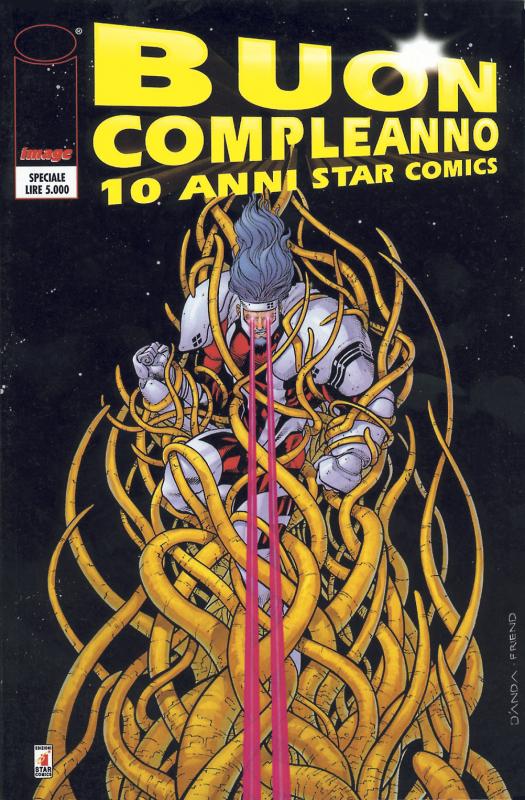 (03) - BUON COMPLEANNO 10 ANNI STAR COMICS - giugno 1997 - 96 pgg. + cop. - cm 17 x 25 dq - Misto - Lire 5.000. Numero speciale che celebra il decennale della Star Comics. Raccoglie tre storie: “The Snake” (Ryoichi Ikegami), LAZARUS LEDD “Una notte, dopo la pioggia” (Ade Capone/Alessio Fortunato), MAJESTIC “Il grande freddo” (Alan Moore/Carlos S’Anda). Esce con tre copertine differenti, ognuna delle quali si ispira a uno dei paesi da cui proviene la produzione a fumetti in cui è specializzata la Casa editrice: Giappone (copertina di Ryochi Ikegami), Italia (Alessandro Bocci), America (Carlos D’Anda, Richard Friend).