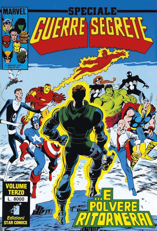 03 (09) - GUERRE SEGRETE Speciale “...e polvere ritornerai” - suppl. a L’UOMO RAGNO n. 52 - luglio 1990 - 128 pgg. + cop. - cm 17 x 25 dq - 4 + 4 - Lire 8.000. Testi di Jim Shooter, matite di Mike Zeck. Da «Marvel Secret Wars» nn. 9/12.