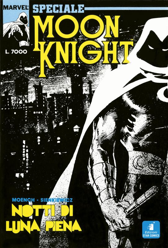 s.n. (12) - MOON KNIGHT Speciale “Notti di luna piena” - suppl. a L’UOMO RAGNO n. 64 - 15 gennaio 1991 - 96 pgg. + cop. - cm 17 x 25 dq - 4 + 4 - Lire 7.000. Testi di Dough Moench, matite di Bill Sienkiewicz. Da «Moon Knight» nn. 26/30.