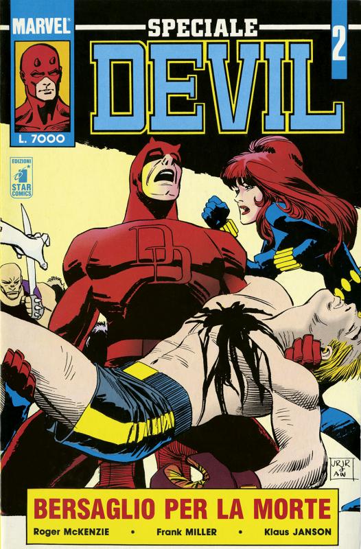 02 (19) - DEVIL Speciale "Bersaglio per la morte” - suppl. a STAR MAGAZINE n. 13 - ottobre 1991 - 96 pgg. + cop. - cm 17 x 25 dq - 4 + 4 - Lire 7.000. Testi di Roger McKenzie, matite di Frank Miller. Da «Daredevil» nn. 159/164 già apparsi in Italia su Il Settimanale dell’UOMO RAGNO > UOMO RAGNO Seconda Serie nn. 33/47.
