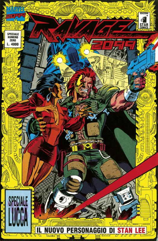 00 (28) - MARVEL 2099 n. 0 Speciale - suppl. a L’UOMO RAGNO n. 118 - aprile 1993 - 96 pgg. + cop. -cm 17 x 26 dq - 4 + 4 - Lire 4.000. Presenta i n. 1 delle collane L’UOMO RAGNO 2099 (testi di Peter David, disegni di Rick Leonardi e Al Williamson), RAVAGE 2099 (testi di Stan Lee, disegni di Paul Ryan, Keith Williams e Steve Alexandrov), DOOM 2009 (testi di John Francis Moore, disegni di Pat Broderick), THE PUNISHER 2099 (testi di Pat Mills e Tony Skinner, disegni di Tom Morgan e Jim Palmiotti). Esiste un’edizione variant con in cover RAVAGE 2099, realizzata in occasione di Lucca '93.