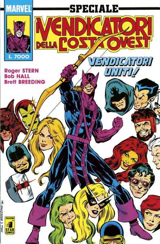 s.n. (15) - I VENDICATORI DELLA COSTA OVEST Speciale “Vendicatori uniti!” - suppl. a CAPITAN AMERICA E I VENDICATORI n. 19 - 5 aprile 1991 - 96 pgg. + cop. - cm 17 x 25 dq - 4 + 4 - Lire 7.000. Testi di Roger Stern, matite di Bob Hall. Pubblica la miniserie originale «West Coast Avengers» nn. 1/4.