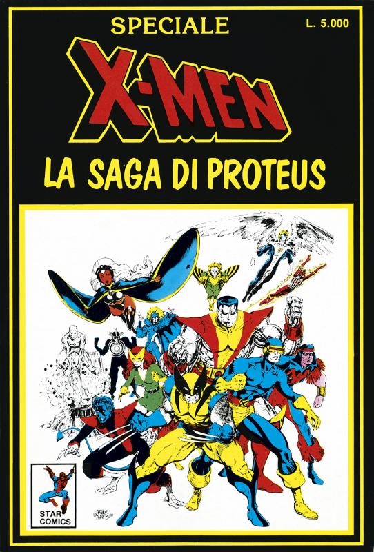 01 (01) - X-MEN Speciale "La saga di Proteus” - suppl. a L’UOMO RAGNO n. 19 - dicembre 1988 - 112 pgg + cop. - cm 17 x 25 dq - 4 + 4 - Lire 5.000. Testi di Chris Claremont, matite di John Byrne. Da «X-Men» nn. 125/128. Allegati 2 adesivi.