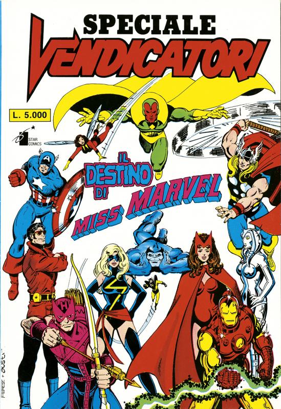 01 (02) - I VENDICATORI Speciale "Il destino di Miss Marvel” - suppl. a L’UOMO RAGNO n. 24 - 15 maggio 1989 - 80 pgg + cop. - cm 17 x 25 dq - 4 + 4 - Lire 5.000. Testi di Ralph Macchio, Jim Shooter, Chris Claremont. Matite di Walt Simonson, George Perez, Mike Golden. Da «Avengers 300», «Avengers 200», «Avengers Annual 10».