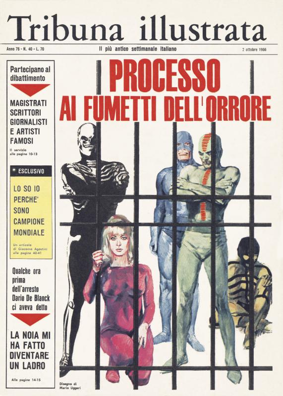 Supplemento domenicale del quotidiano romano LA TRIBUNA, esce a partire dal 1893: Nel dopoguerra è pubblicato da Gruppo Editoriale Giornale d’Italia - La Tribuna e diretto da Carlo Barbieri (RM 223, 25.07.57 - 8 pgg. autocop. > varie > 56 pgg. + cop. - cm 31,5 x 44,8 pc > 26,5 x 34 pm - Misto - Cent. 10 > vari > Lire 100). La sua formula editoriale, che dà ampio spazio all’illustrazione di fatti di cronaca e di attualità, anticipa di sei anni l’uscita della DOMENICA DEL CORRIERE. Nel 1913 introduce una pagina per ragazzi intitolata “La Tribuna Illustrata dei piccoli”, che presenta una storia in sei vignette con didascalie in rima nell’ormai consolidata tradizione del CORRIERE DEI PICCOLI. Illustrazioni di E. Zanetti, S. Guastalla ed E. Abbo. Negli anni Cinquanta si presenta ancora con la classica sovracopertina stampata su carta colorata e ospita disegni di Vittorio Pisani (copertine) e all’interno di Apolloni, Artioli, Gastone Bellincampi (G. Belli), O. Calderisi, Vittorio Cossio e U. Monicelli; vignette di Amurri, Benfi, Onorato e Attalo. Vi collabora per i servizi sportivi Vincenzo Baggioli. Negli anni Sessanta il settimanale viene edito dalla E.P.I.R. Edizioni Periodiche Illustrate Roma; dal 1963 le copertine sono firmate da G. Di Stefano. Nel 1965 la testata è ceduta alla Soc. Ed. Acc. Semp. Fratelli Crespi e la direzione viene affidata ad Alfredo Pigna (MI 256, 20.09.65). La grafica ricalca quella della DOMENICA DEL CORRIERE e Mario Uggeri disegna le copertine tra cui quelle celebri dei nn. 27 (“I Diabolik della strada”) e 40 (“Processo ai fumetti dell'orrore") del 1966. Dopo un ulteriore cambiamento, sospende le pubblicazioni con il n. 15 del 13 aprile 1969 per rinascere subito dopo come T7 TISETTE.