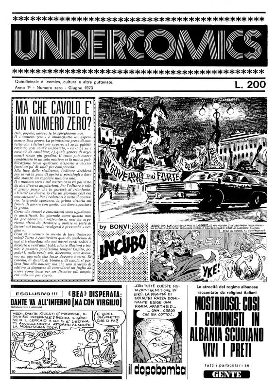 “Quindicinale di comics, cultura e altre puttanate”, edito a Milano dalla Dardo nel giugno 1973. È un numero zero per sondare le possibilità di una nuova edizione di OFF-SIDE che non ha avuto seguito (Quindicinale - dr, Enrico Giannini - 28 pgg. + cop. - cm 29 x 40 pc - Bianco e nero - Lire 220). Rivista contenitore, pubblica CRONACHE DEL DOPOBOMBA e “Incubo” di Franco Bonvicini (Bonvi), “Colpo di stato “ di Francesco Guccini e Guido Buzzelli, SANTINCIELO di Gualtiero Schiaffino e DANTE di Marcello Toninelli (Marcello).