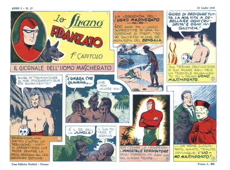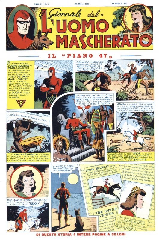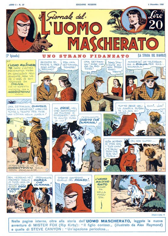 Testata contenitore presenta L’UOMO MASCHERATO di Lee Falk e Ray Moore con disegni apocrifi di Guido Fantoni (nn. 1/48); MISTER FOX LA VOLPE (Rip Kirby) di Alex Raymond (nn. 1/48); CAPITANO ISY SALVAGENTE (Captain Easy) di Leslie Turner (nn. 1/25); IL PRINCIPE VALENTINO (Prince Valiant) di Harold Roudolph Foster (nn. 1/16) ripreso da LONE RANGER GIORNALE (nn. 58/73); DOTTOR WOOBES (Doctor Woobes) di J. N. Mc Ardle con “Il figlio delle antilopi” (nn. 28/32); STEVE CANYON (Steve Canyon) di Milton Caniff in “Un’ispezione pericolosa” (nn. 32/48); “Tra i selvaggi della Guiana” di M. Malatesta e Ferdinando Vichi (nn. 49/57); LONE RANGER (The Lone Ranger) di Fran Striker & Charles Flanders - ripreso da LONE RANGER GIORNALE (nn. 58/73). Dal n. 17 (18 luglio 1948) al n. 32 (31 ottobre 1948) assume formato albo orizzontale (12 pgg. autocop. - cm 32,2 x 24), dal n. 33 torna al formato giornale ma ridotto (8 pgg. autocop. - cm 25 x 35,4) e la testata diventa L’UOMO MASCHERATO GIORNALE. Col n. 58 la testata si fonde con IL GIORNALE DI LONE RANGER, di cui continua alcune serie.