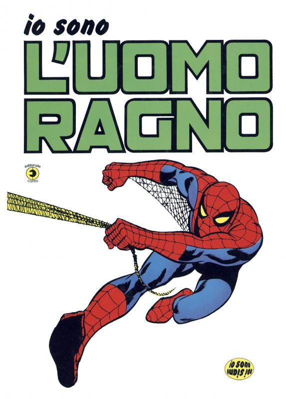 VC2 - “Io sono l’Uomo Ragno” - 1978 - Editoriale Corno - 196 pgg. + cop. - cm 21,4 x 29,6 cart. - 4 + 4 - Lire 8.500. Introduzione di Luciano Secchi. Ristampa i nn. 1, 14, 33, 54, 55, 57 della serie L’UOMO RAGNO (1) (Corno, 1970).