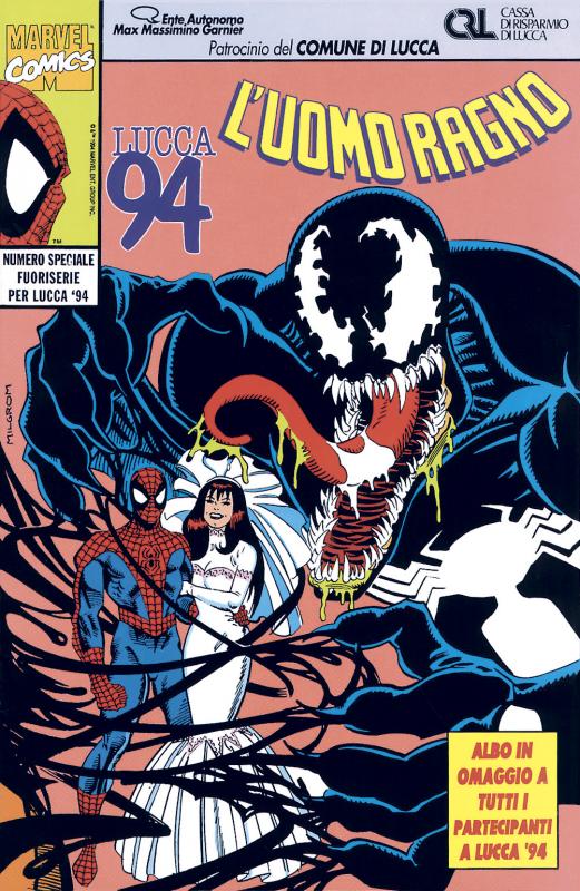 ES7 - L’UOMO RAGNO Speciale Lucca - nn. 1/4 - 30 ottobre 1994/30 marzo 1996 - Marvel Italia - 16 pgg. + cop. - cm 17 x 26 pm - 4 + 4. Serie di numeri speciali fuoriserie, prodotti in occasione della mostra dei comics di Lucca e distribuiti in omaggio ai partecipanti alla manifestazione. Gli albi escono come supplementi a L’UOMO RAGNO (5). Gli albi presentano oltre a una storia breve dedicata al personaggio, anche news, anticipazioni e pubblicità delle testate Marvel Italia.