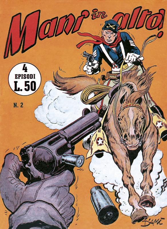 In questa serie la scritta MANI IN ALTO! appare prima come testata e poi sempre in copertina, tra parentesi, in carattere tipografico, sotto il titolo di ogni albo. Copertine di Rinaldo D’Ami.