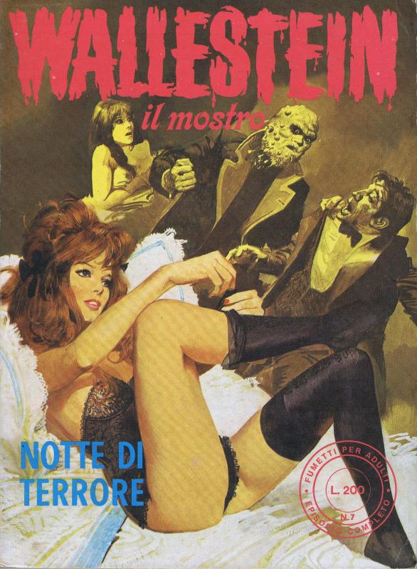 Albo - che dal n. 7 diventa tascabile - per adulti di genere horror con protagonista un orribile mostro che, fatta propria l’identità del Conte Jimmy Wallestein, grazie a una speciale maschera che ne riproduce le fattezze, diventa un misterioso giustiziere che combatte il crimine. Testi di Renzo Barbieri. Disegni di Mario Cubbino, Giovanni Romanini (nn. 12/15 - 1974; 1/9, 68 (rist. n. 15), 79, 80 - 1975/80; 2, 3, 6 e 9 - 1981/82), Sotty Stizza (nn. 10/19, 21, 24, 26, 27, 30, 32, 35, 36, 39, 40, 41, 44, 46, 48, 50, 54, 57, 61, 63, 65, 66, 67, 69, 70, 71, 74, 75/78 - 1976/79), Flavio Bozzoli (nn. 20, 22, 23, 25, 28, 29, 31, 33, 34, 37, 38, 42, 43, 45, 47,49, 51 e 55 - 1976/77), Stefano Di Vitto (nn. 56, 58, 59, 60, 62, 64, 72 e 73 - 1978/79), Angelo Maria Ricci (nn. 1, 4, 5 e 10 - 1981/82), Marco Bianchini, Raffaele Della Monica, Paolo Morisi, Domenico Di Vitto. Copertine di Alessandro Biffignandi, Emanuele Taglietti e Oliviero Berni. Dal n. 61 (giugno 1978) diventa «Collana Wallestein». La serie viene riproposta più volte, anche con vignette rimontate, su diverse testate della Edifumetto alle quali si rimanda per consultazione. Brevi episodi inediti vengono pubblicati su ORROR (Edifumetto, 1977) e su COLLANA SPEKTRON n. 7 (Edifumetto, 1973), ma in questo secondo caso il personaggio viene ribattezzato SPEKTRON.