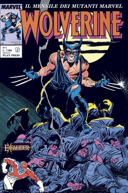 Serie I: albi che presentano la serie WOLVERINE testi di Chris Claremont, Peter David, Archie Goodwin, Jo Duffy, Larry Hama, Howard Mackie, Warren Ellis, Tom DeFalco, Fabian Nicieza, Erik Larsen, Frank Tieri, matite di John Buscema, Gene Colan, John Byrne, Bill Sienkiewicz, Marc Silvestri, Klaus Janson, Larry Stroman, Sam Kieth, Dwyne Turner, Adam Kubert, Ron Garney, Ian Churchill, Ron Wagner, Duncan Rouleau, Val Semeiks, Anthony Winn, Cary Nord, Leonardo Manco, Denys Cowan, Stephen Platt, Jeff Matsuda, Leinil Francis Yu, Mike Miller, Brandon Peterson, Steve Skroce, Sean Chen e EXCALIBUR di Chris Claremont, Michael Higgins, Dana Moreshead, Scott Lobdell, Alan Davis, Dan Slott, Richard Ashford/Alan Davis, Ron Lim, Marshall Rogers, Rick Leonardi, Chris Woziak, David Ross, Ron Wagner, Mark Badger, Dave Hoover, Doug Braithwaite, Will Simpson, Barry Windsor Smith, Bill Sienkiewicz, Joe Madureira, Steve Buccellato, Ken Lashley. I nn. 20/21, 32/33 e 44/45 sono albi doppi. In appendice, COLOSSO di Ann Nocenti/Rick Leonardi nei nn. 1/4 (novembre 1989/febbraio 1990), CICLOPE di Bob Harras/Ron Lim nei nn. 5/8 (marzo/giugno 1990), HAVOK di Howard Mackie/Rich Bukler nei nn. 9/12 (luglio/ottobre 1990), DAZZLER di Tom DeFalco/Frank Springer dal n. 13 (novembre 1990) al numero doppio 20/21 (luglio/agosto 1991). Con il n. 20/21 cominciano le pubblicazioni di CLOAK E DAGGER dal punto in cui si sono interrotte con la chiusura della testata NUOVI MUTANTI (Play Press, 1991). Testi di Bill Mantlo, matite di Art Adams, Bret Blevins, June Brigman, Larry Stroman. Con il n. 34 (settembre 1992) termina la serie CLOAK E DAGGER sostituita da varie storie brevi di WOLVERINE estratte dalla testata antologica “Marvel Comic Presents” scritte da Peter David, Timothy Truman, Scott Lobdell, Ann Nocenti e disegnate da Sam Keith, Todd Foxx, Gene Colan, Steve Lightle. Il n. 52 (maggio 1994) è il primo della nuova serie che coincide col passaggio della testata dalla Play Press alla Marvel Italia. Cambia di nuovo il sommario dell’albo: ora come terzo serial d’appendice viene presentato ALPHA FLIGHT di Bill Mantlo/Mike Mignola, Jim Lee, Terry Shoemaker, June Brigman, Whilce Portacio. Fino al n. 67 (agosto 1995) ha doppia numerazione evidenziata però solo nel colophon. Dal n. 81 (ottobre 1996) due nuovi serial in appendice: CABLE per i testi di Jeph Loeb, John Ostrander, Todd DeZago, James Robinson, Joe Casey, Joe Pruett, Robert Weinberg e le matite di Arnie Jorgesen, Ian Churchill, Tim Sale, Sal Larroca, José Ladronn, Randy Green, German Garcia, Ryan Benjamin, Rob Liefeld, Michael Ryan e X-MAN per i testi di Jeph Loeb, John Ostrander, Terry Kavanagh e le matite di Steve Skroce, Scott McDaniel, Roger Cruz, Rick Leonardi. Dal n. 107 (dicembre 1998) si passa al formato 48 pgg. carta patinata con il sommario della rivista che si stabilizza con WOLVERINE e CABLE. Il n. 115 (agosto 1999) è uno speciale di 96 pgg. collegato al crossover mutante “RigeneraXione” e presenta due storie degli X-MEN di Steve Seagle, Joe Kelly/Chris Bachalo, Adam Kubert.