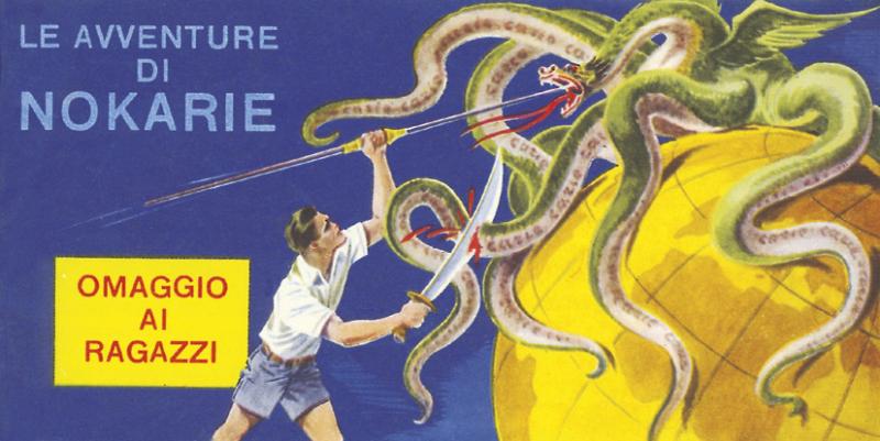 Albo pubblicitario pubblicato a Genova dalle edizioni Barabino nel 1958 (16 pgg. + cop. - 2 + 2 - cm 17 x 8 - Gratuito). Numero unico che insegna ai bambini ad usare gli spazzolini No-Karies.