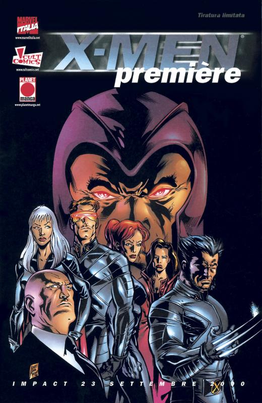 ES4 - “X-Men Première” - COLLANA BOOKSTORE n. 74 (settembre 2000) - Panini - 16 pgg. + cop. - cm 17 x 26 pm - Lire 4.000. Edizione in tiratura limitata riservata al circuito librario. Presentazione con articoli, schizzi a matita e studi dei personaggi, commentati dagli autori stessi, delle nuove testate dedicate al mondo mutante. Contiene inoltre un articolo sul film degli X-Men e un preview su la produzione Panini del 2000. Schizzi a matita di: Lenil Francis Yu/Adam Kubert/Whilce Portacio/Ariel Olivetti.