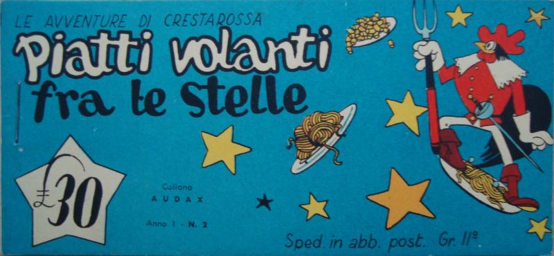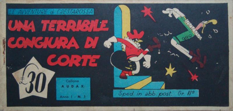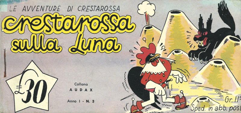 Tre albi a striscia con copertine in cartoncino e pagine che alternano bianco e nero con bicromie (magenta, cyan, viola). Ogni albo ristampa due storie di CRESTAROSSA dei fratelli M. e A. Iocca, già uscite su LUPETTINO (1) e FANTOMAS Tascabile (Lupettino, 1949).