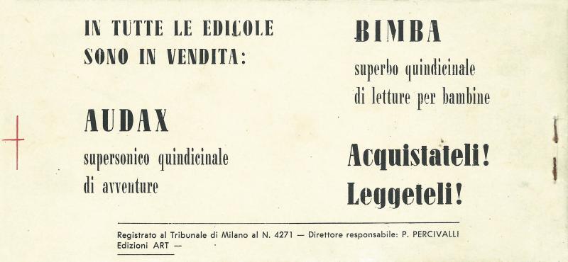 La serie è priva di data ma riconducibile al 1957 visto che pubblicizza AUDAX e BIMBA di quell'anno.
