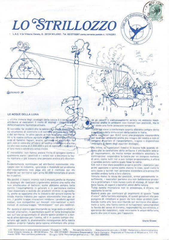 Pubblicazione edita a Milano dalla L.A.C. (Lega per l'abolizione della caccia) a partire dal 1979. Il n. 5 (15 luglio 1979) presenta, alle pgg. 3 e 4, il fumetto BUDIULIK di Max Greggio, a cura della redazione di Livornocronaca.