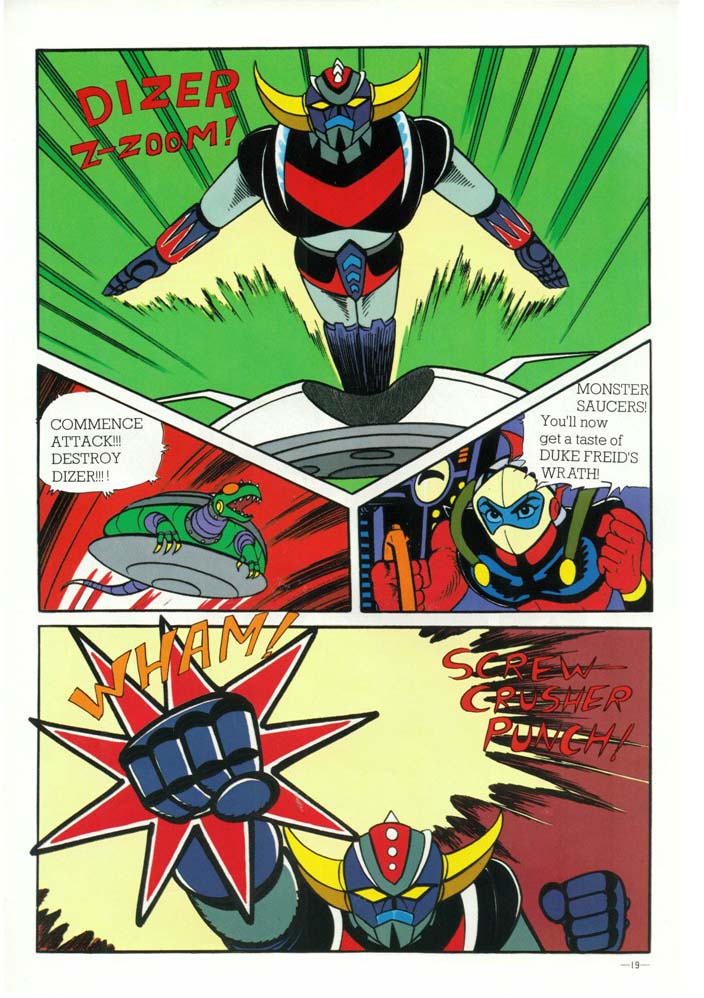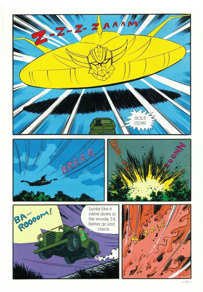 Nelle sue tavole viene raccontato sommariamente l'arrivo di Duke Fleed (o Duke Freid per usare la traslitterazione dell'albo in questione) sulla Terra e il suo primo combattimento con un mostro di Vega. La narrazione è stringata, ma sufficiente a fornire un quadro del personaggio, dell'ambientazione, del robot. Le tavole somigliano molto a quelle iniziali del manga ufficiale, ma non sono le stesse. Sono state infatti ridisegnate e le vignette riassemblate in modo da essere più numerose in ogni pagina. Inoltre la colorazione è abbastanza pacchiana.