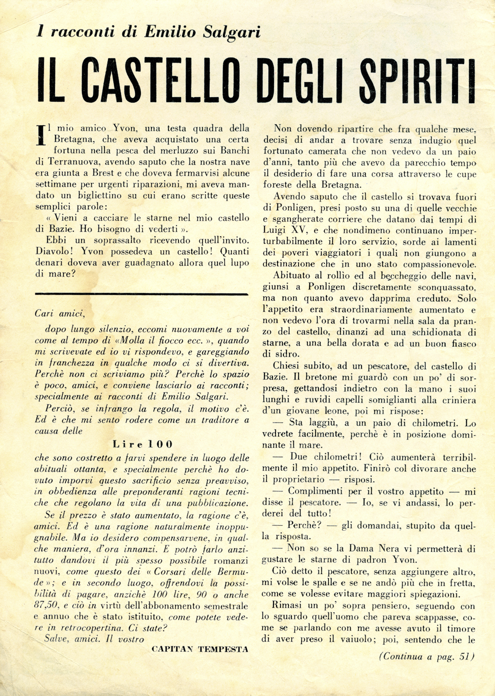 A Dicembre, Vaglieri riprende quindi il suo settimanale salgariano e inizia a pubblicare con Tristano Torelli la prima serie degli Albi Salgari in formato albo d’oro. Dopo questa esperienza, il sodalizio tra i due si esaurisce e sia Vaglieri sia Torelli continueranno separatamente la propria attività.