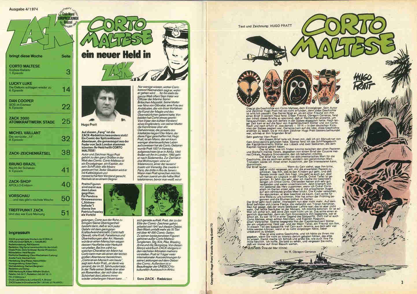 Potrei dire che nel 1969, la sera del 2 novembre – giorno dei morti – in realtà io ho visto una nascita eccellente, quella di Corto Maltese