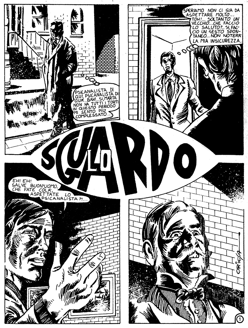 In un mese preparai delle tavole orrorifiche lucidate da fotoromanzi, disegnate, macchiate, spruzzate, grattate, come dire alla Dino Battaglia, e col metrò scesi alla fermata di Cadorna, per raggiungere lì vicino gli uffici in via Mascheroni, di Gino Sansoni. Mi accolse con un urlo e le braccia larghe in manica di camicia. Basso, grassotello, un sigaro di legno appeso con delle cordicine intorno al collo come se fossero occhiali, esagitato e sempre in movimento dinamico perpetuo negli stanzoni della redazione, tanto da sembrare un papa in Vaticano. Prese tutto il materiale che avevo nella mia cartella, e mi fece dare, dal suo ragionier Ciapessoni, 10 mila lire.